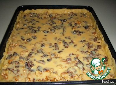 На тесто ровным слоем насыпать крупно измельченные орехи.