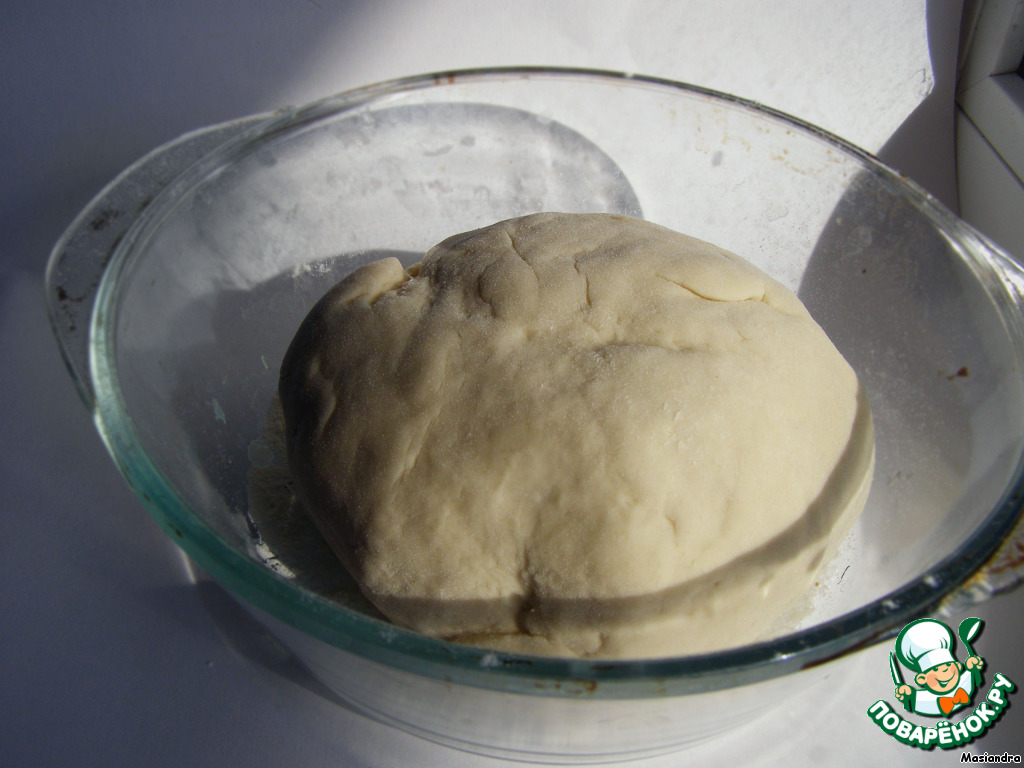 Из муки, 1 яйца, 0,5 ч.л. соли, 210 мл теплой воды и 1 ч.л. сахара замесить тесто, как на пельмени. По желанию, в тесто можно добавть ванильный сахар.