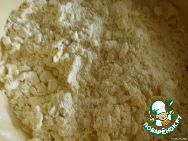 Перемешать маргарин с мукой до получения смеси похожей на хлебные крошки.