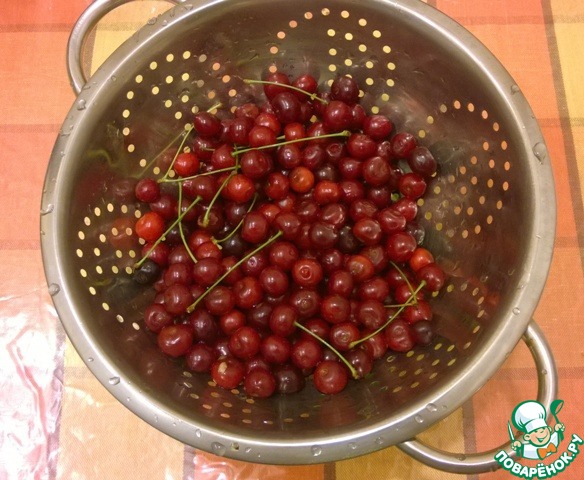 У меня было около 400 граммов свежей вишни. Не слишком крупной, достаточно кислой, так что есть ее просто так было не очень вкусно:). Это как раз удобная порция – граммов 400-500, чтобы не загромождать кухню противнями с сохнущей вишней.