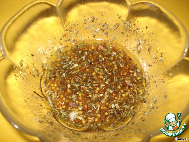 Выдавить чеснок и смешать с остальными ингредиентами для соуса.