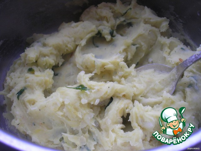 Тщательно перемешать. Пюре станет красивого желтого цвета. Жаль, на фото плохо видно :-)
