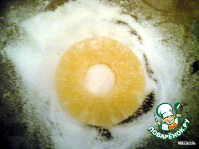 Каждое кольцо ананаса обвалять в сахарной пудре.