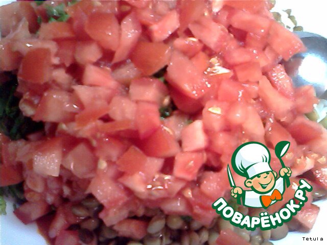 | Этому салату я готова спеть оду. Я попробовала его достаточно давно в одном из кафе родного города. Именно с этого салата началось мое знакомство и безмерная любовь к чечевице. Кроме того, в нем сочетаются трудно уживающиеся качества: сытность и легкость. А аромат... Впрочем, достаточно слов, перейдем к делу. |
