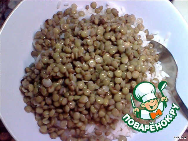 Сразу оговорюсь, почему я рис и чечевицу "измеряла" миллилитрами. Просто отмеряла стаканом, а сколько это в граммах - не знаю. Теперь сам рецепт.