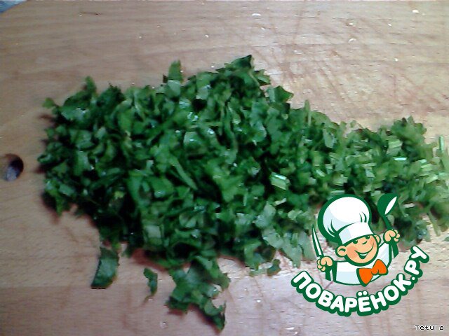 Нарезаем ее достаточно мелко и отправляем к рису и чечевице.