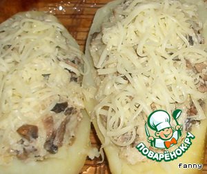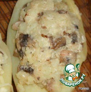 | Решая, что приготовить на гарнир, выбрала картошку, но просто картошка - скучно. Получилась картошка, фаршированная ею же самой и... |