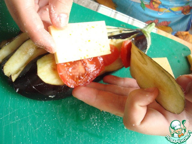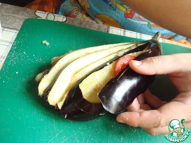 1) Томясь в духовке, ваш веер выделяет вкусный сок. Можно периодически вытаскивать противень и поливать этим соком баклажан!