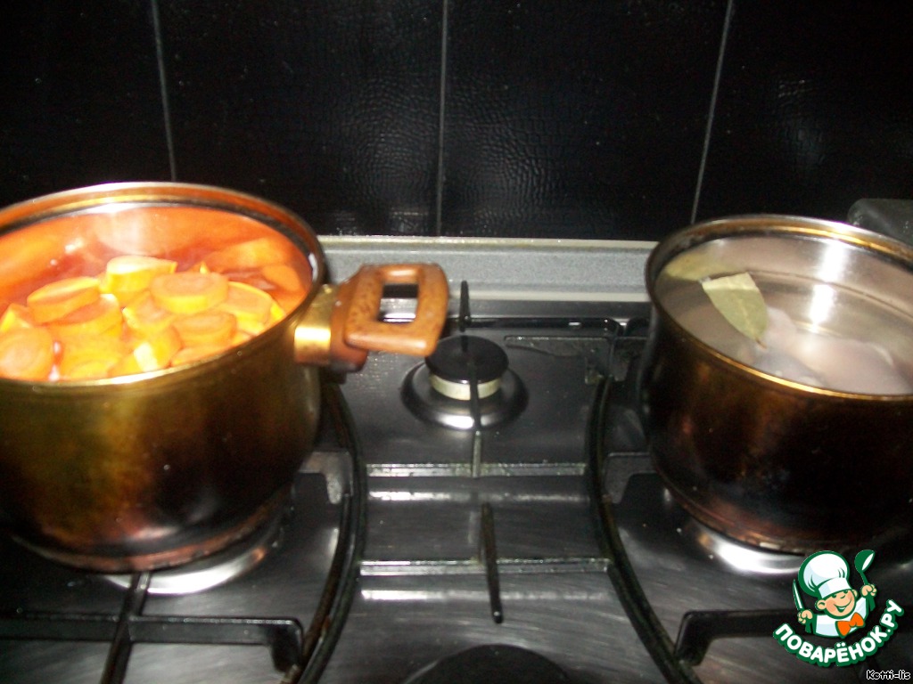 Первая и она же, последняя - пюре морковное не смешивайте со всем молоком, в котором морковь тушилась. Жидкости очень много. Сначала отлейте, морковь перетрите, а дальше добавляйте по мере надобности. Это единственное замечание ко всему рецепту.