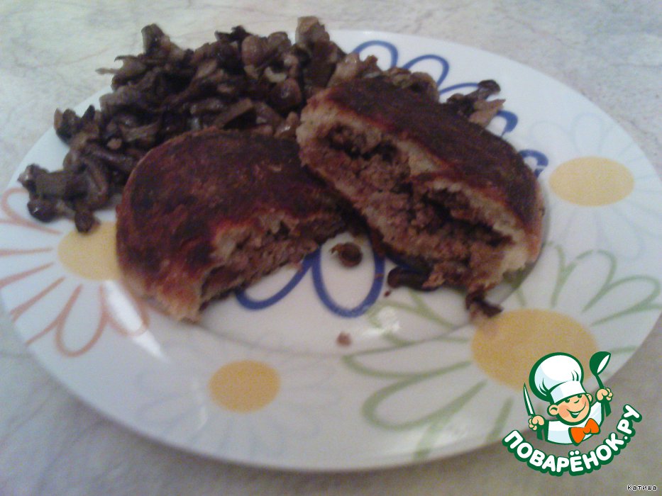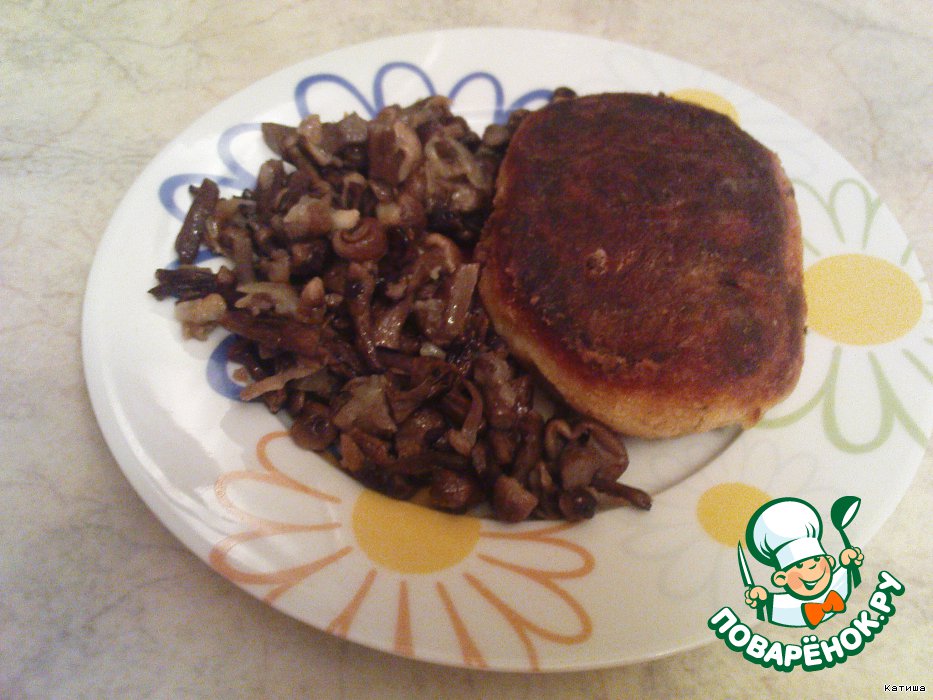 Зразики получаются такими сытными и вкусными,что гарнир к ним не обязателен,но я ,всe же,нажарила опят![/size]