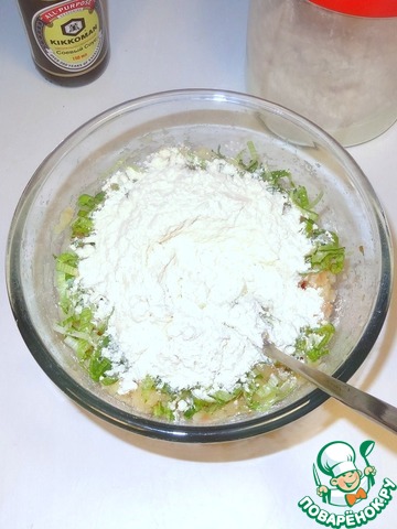 Вмешайте по немногу муку и очень хорошо перемешайте, от этого зависит как будут жариться котлеты.