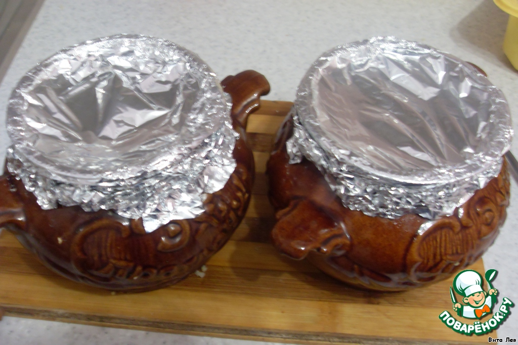 Накрываем крышками или фольгой и ставим в слегка нагретую духовку и готовим при 170 градусов примерно 40-50 минут до готовности.