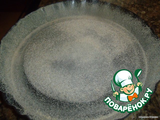 Сейчас мы подготовим нашу форму, обмажем ее маслом или маргарином и посыпьте сухариками. Да нет! не теми солеными, что к пиву, а крошкой!