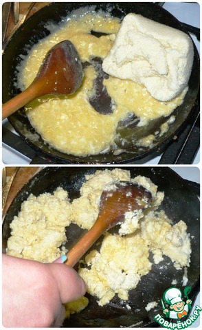 А пока растапливаем сливочное масло в кастрюле и смешиваем его с яйцом и содой.