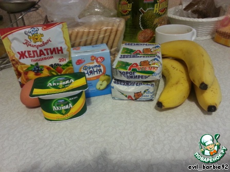 Вот все продукты, которые нам нужны для приготовления нашего замечательного десерта. Хочу сразу сказать, что творог можно брать любой жирности. Яблочный сок можно заменить любым другим по вашему вкусу. Йогурт также можно использовать любой.