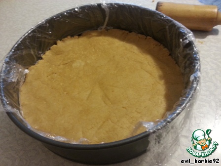 Выкладываем тесто на дно формы и равномерно распределяем его руками. Должно получиться вот так.