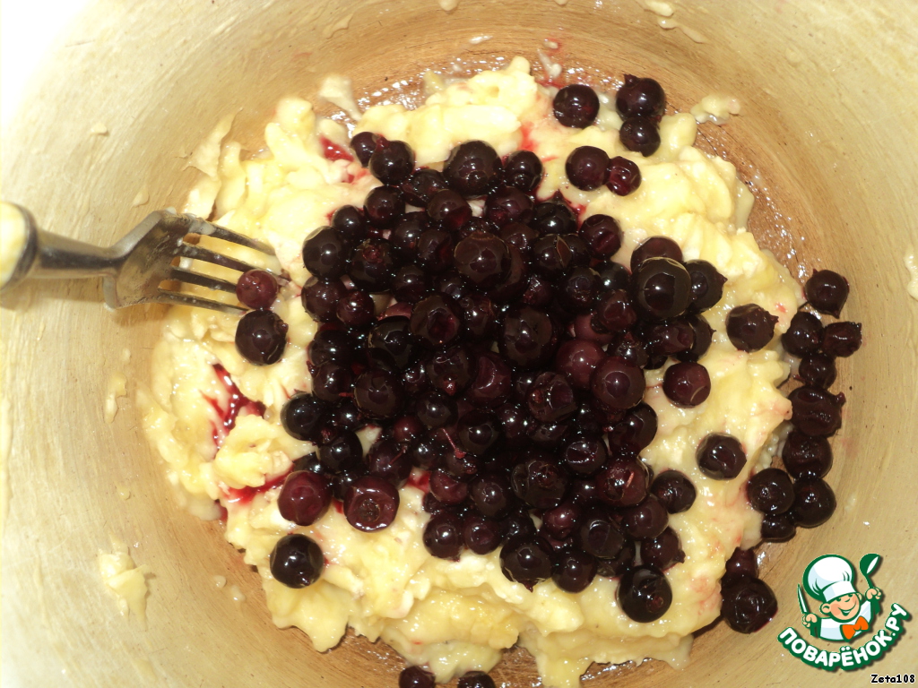 Размять бананы, лучше вилкой... добавить туда же смородину, выращенную и собранную своими руками под ярким летним солнцем, всегда приятнее, когда знаешь, что такая вкусная и полезная ягода выращена самостоятельно.