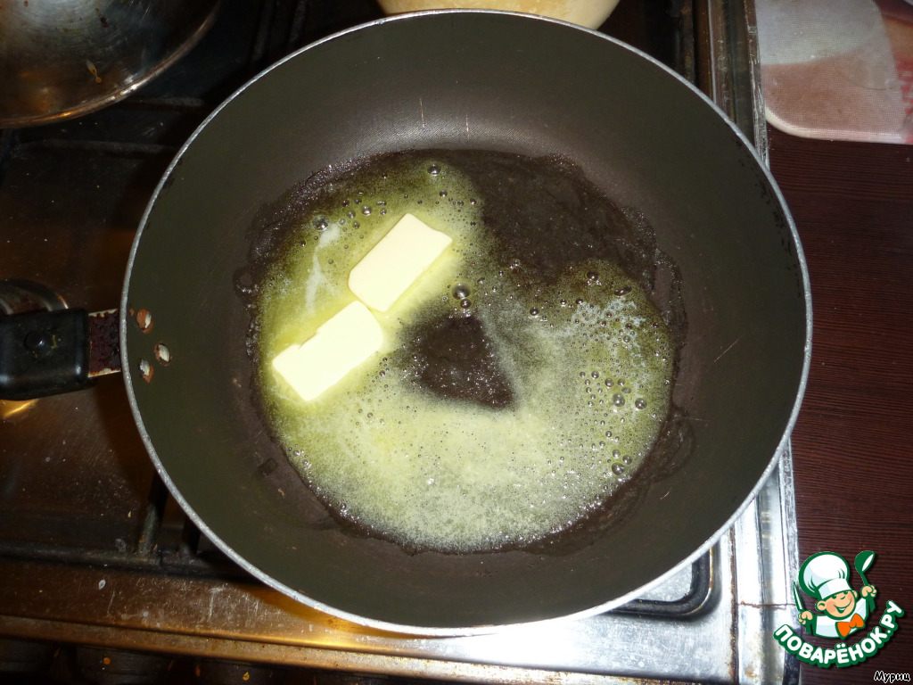 Растапливаем масло в сковороде с высокими бортиками (кастрюльке или любой другой емкости, подходящей для использования в духовке)