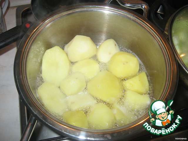 картофель и кабачки измять и смешать до однородной массы , добавить соль , укроп зеленый и т.п
