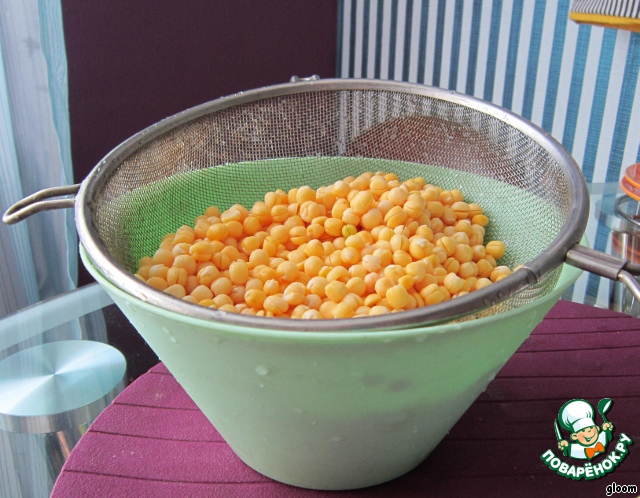 Горох и перловку (можно не на вес, а, например, 1 стакан гороха, 2 стакана перловки или поровну)