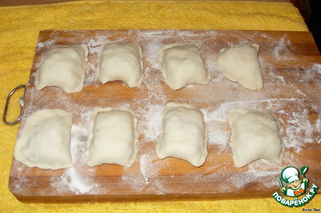Защипнула края по всей длине. Получился такой длинный вареник.