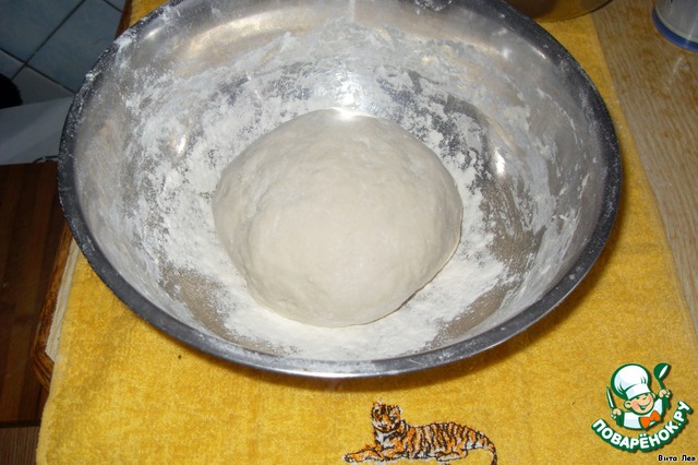 Готовим тесто. Растворяем дрожжи в 100 г теплой кипяченой воды или молока, добавляем сахар, соль, вливаем стакан кефира или молока (если пост, то воды). В чашку с уже просеянной мукой вливаем нашу жидкость и замешиваем наше тесто. Накрываем влажным полотенцем и ставим отдохнуть.