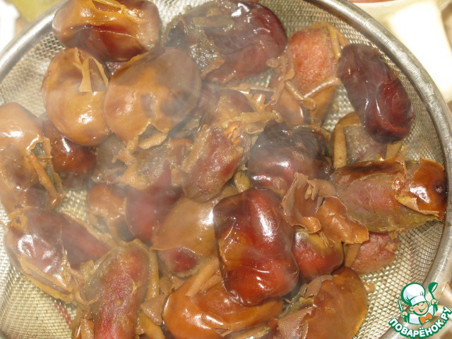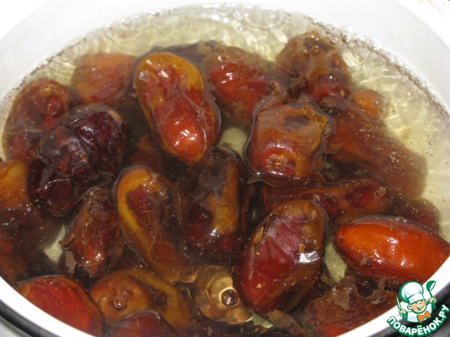 Бланшировать финики в кипящей воде 2-3 минуты.