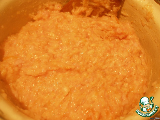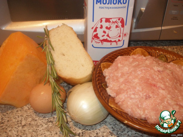 Смешать куриный фарш с тыквенным пюре, добавить яйцо, замоченную в молоке булку, мелко нарубленный лук, соль и перец по вкусу.