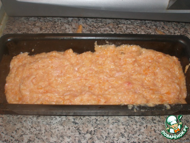 Форму смазать сливочным маслом. Выложить подготовленную массу и поставить в разогретую духовку на 40 минут.