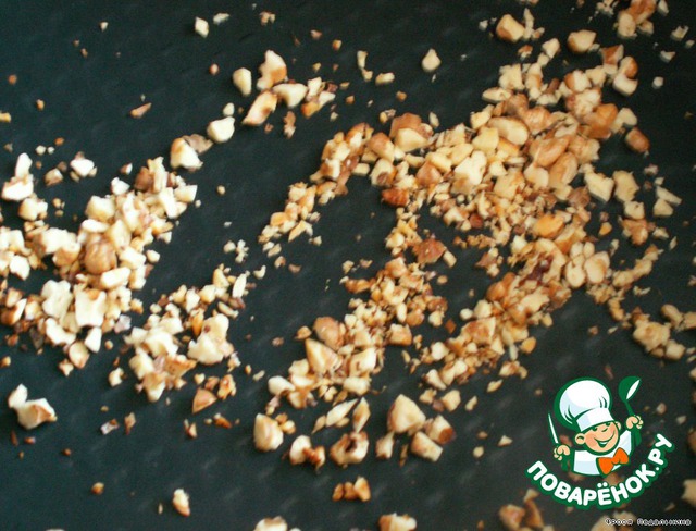 Грецкие орехи очищаем, мелко рубим, но не до состояния порошка.
