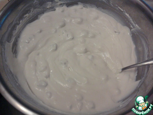 Должна получиться гладкая блестящая масса без зёрен и комочков. Сразу оговорюсь, если вы будете использовать магазинный творог, кремообразный, не зернистый и влажный, или очень влажный домашний творог, тогда кефир не добавляйте, или добавьте в меньшем количестве. Или можете добавить только сметану, ну и другие продукты по рецепту. Кефир нужен для придания кремообразности. Конечно, можно достичь нужной консистенции при помощи сметаны, но, как по мне, это будет очень жирно.