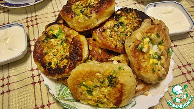 Оладьи с зелёным луком и яйцом