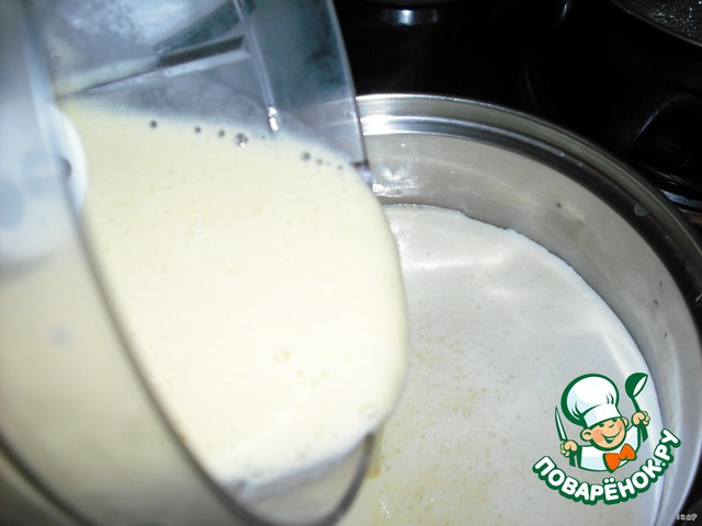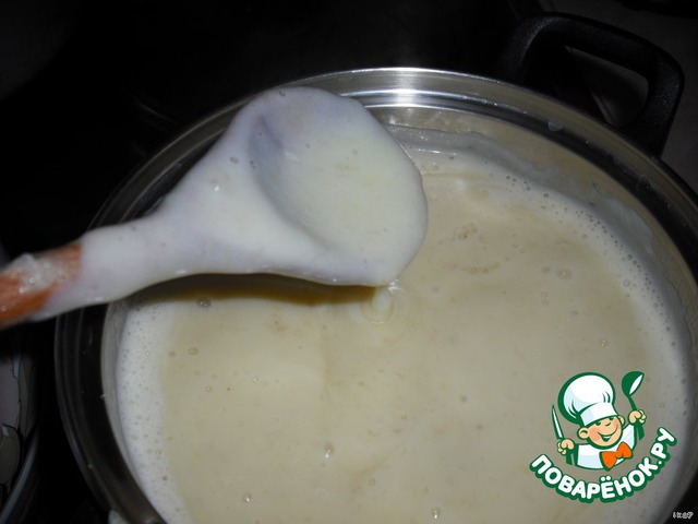 Вливаем массу струёй в закипающее молоко.