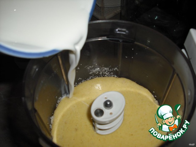 Растворенный крахмал в молоке добавляем в сбитую смесь.