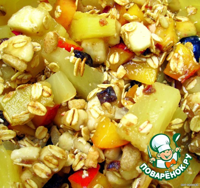 Взяла примерно такое же количество Бирхер-мюсли смеси. Все перемешала.