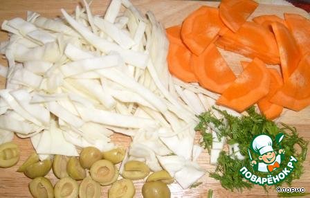 | На ужин сегодня у нас рагу - так его готовит моя мама, я только внесла коррективу - вместо соленых огурцов добавляю оливки, но это дело вкуса. Сытное, полезное блюдо, которым несложно накормить всю семью! |