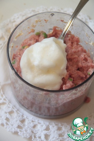 Отдельно взбиваем белки в крепкую пену и добавляем к мясу.
