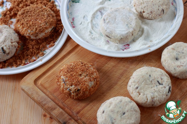 Смешать творог и рис, слепить из этой массы небольшие круглые котлетки и запанировать в миндальной или рисовой муке. Обжарить на топленом масле до готовности.