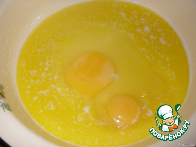 Растереть сливочное масло с сахаром и ванильным сахаром.