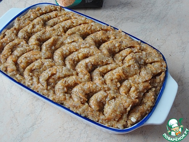 Выкладываем в форму для запекания. Сверху смазываем маслом и делаем узор ложкой.
