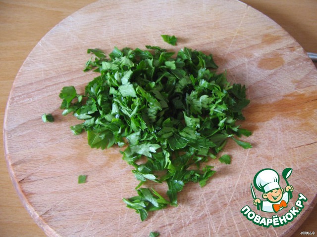 Выкладываем на тарелку, посыпаем тертым пармезаном и рубленной петрушкой.