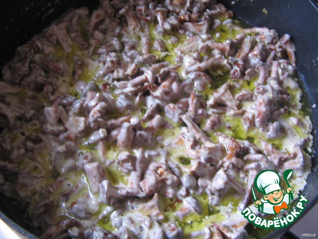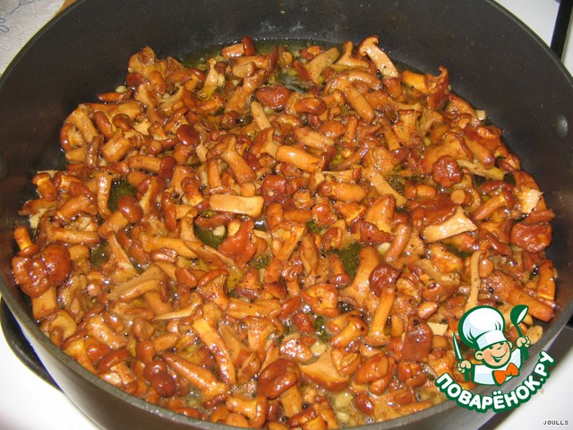 Разогреваем оливковое и сливочное масло в сотейнике и обжариваем нарубленный чеснок 2-3 мин. Добавляем вымытые лисички и тут же их хорошенько солим и перчим. Так грибы лучше вберут в себя ароматы и полнее раскроют свой нежный вкус. Тушим не накрывая минут 15-20.
