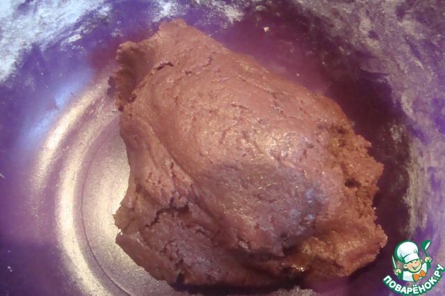 Добавить какао и муку (можно просеять). Вмешать сухие ингредиенты до получения гладкой, пластичной массы.