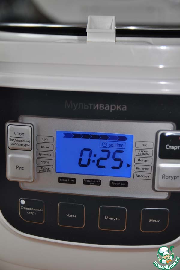 Включаем мультиварку на режим "Выпечка" на 25 минут, крышку закрываем.