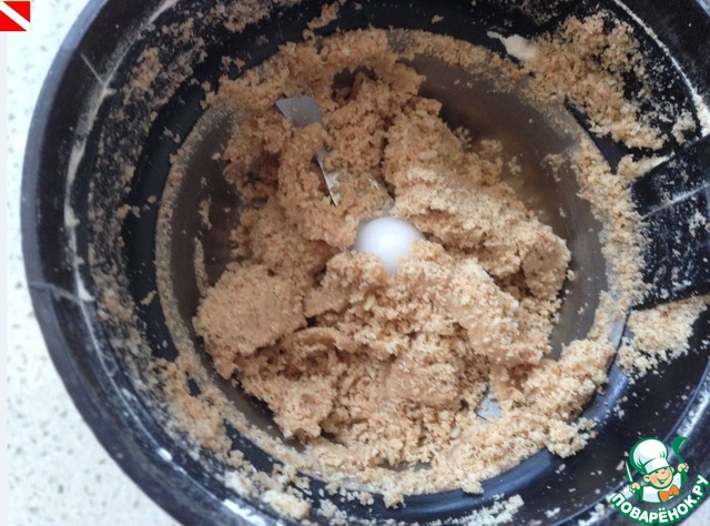 Итак, половину миндаля нужно измельчить в кофемолке, блендере и т. п. практически до пастообразного состояния.