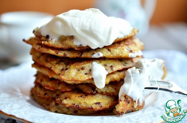 | Вкусные и полезные блинчики. Я очень часто делаю такие на завтрак своим детишкам. И, если на гарнир киноа они есть не будут ни за что, то эти блинчики, "с волшебными зёрнышками внутри", улетают со стола очень быстро. |