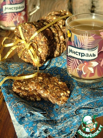 | Идея этих печений-мюсли принадлежит моему мужу. Он очень любит пророщенные крупы и злаки, но есть их просто так довольно скучно ))) А вот в сочетании с орехами, семечками и сухофруктами получается прекрасный снек. Без сахара, очень полезный и питательный. Идеально для энергетического перекуса на работе или в школе. |