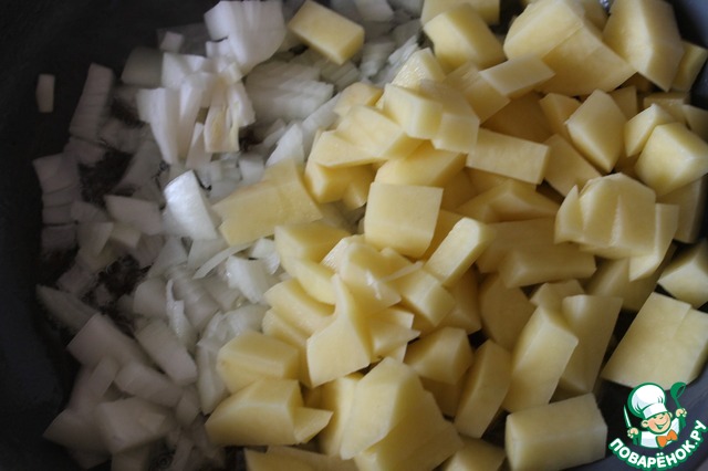 Картофель, кабачок и репчатый лук тоже обжарила отдельно, но не сильно, лишь до прозрачности лука