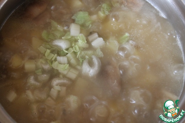 Добавила нарезанный стебель сельдерея и варила до готовности картофеля