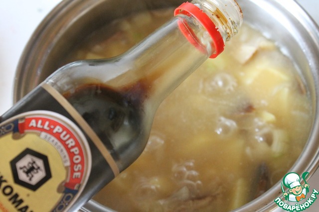 | Ароматный, вкусный, сытный суп, который приправлен вместо соли соевым соусом. Соус играет роль усилителя вкуса в этом и так ароматном супчике. |